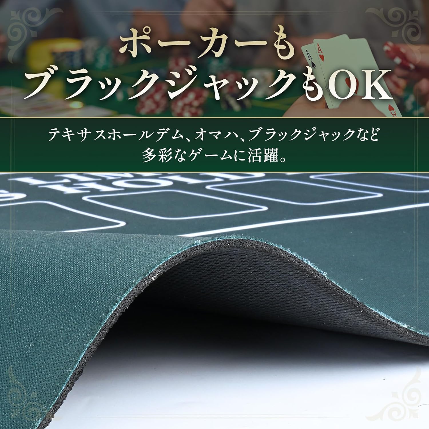 GOODEASY ポーカーマット 120×60cmは、テキサスホールデムを快適に楽しむために設計された、家庭用サイズのポーカーマットです。