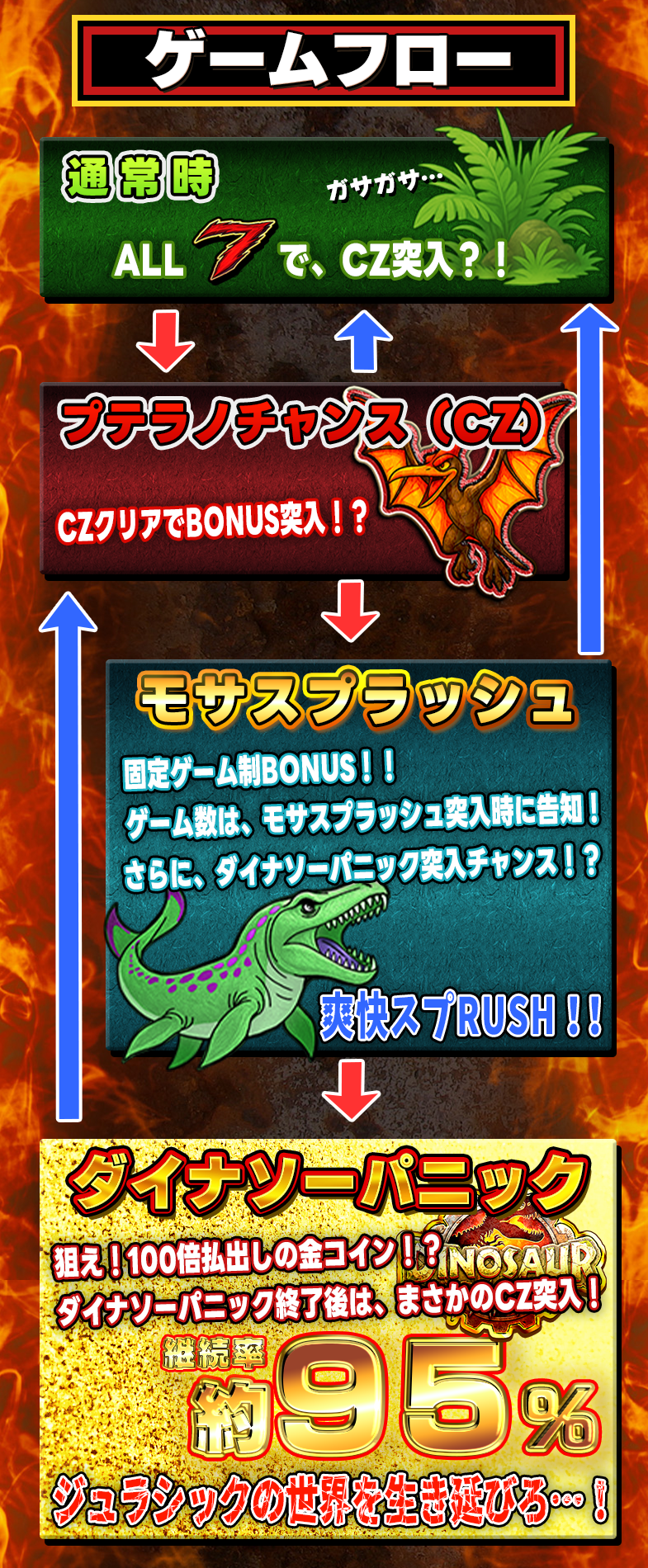 ・終了:8ラインスロット「ダイナソー★パラダイス!!」を終了します。獲得した経験値はこのボタンを押したときに反映されます。