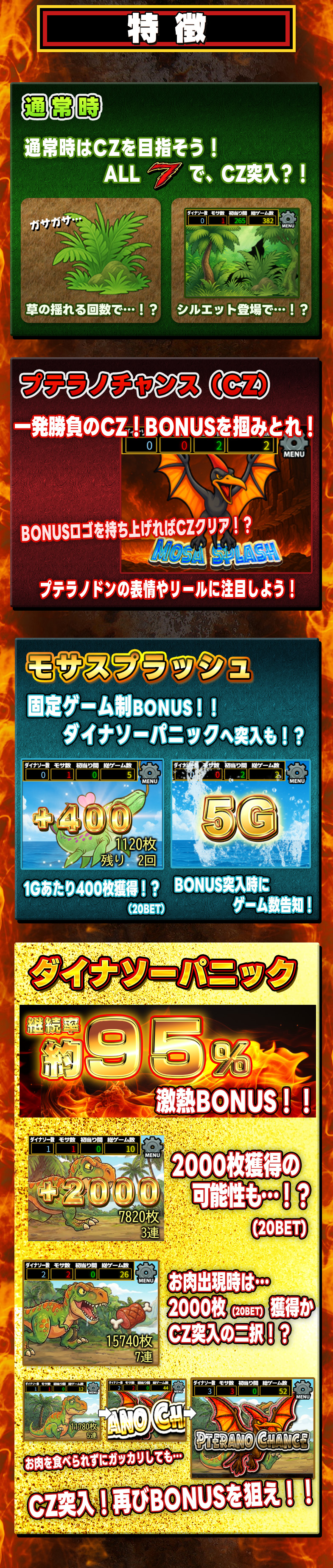 8ラインスロット「ダイナソー★パラダイス!!」はMAXベット専用機です(MAXベットはバトルエリアの場合5ポイントのみとなります。トレジャーエリアの場合は5枚/10枚/20枚の3種類の台からお選び頂けます)。