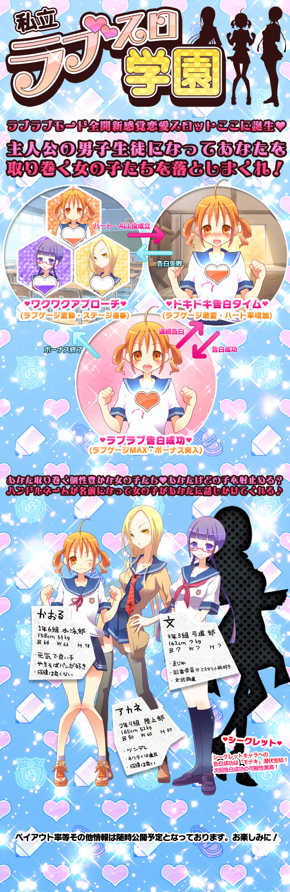 8ラインスロット「私立ラブスロ学園」はMAXベット専用機です(MAXベットは5枚)。